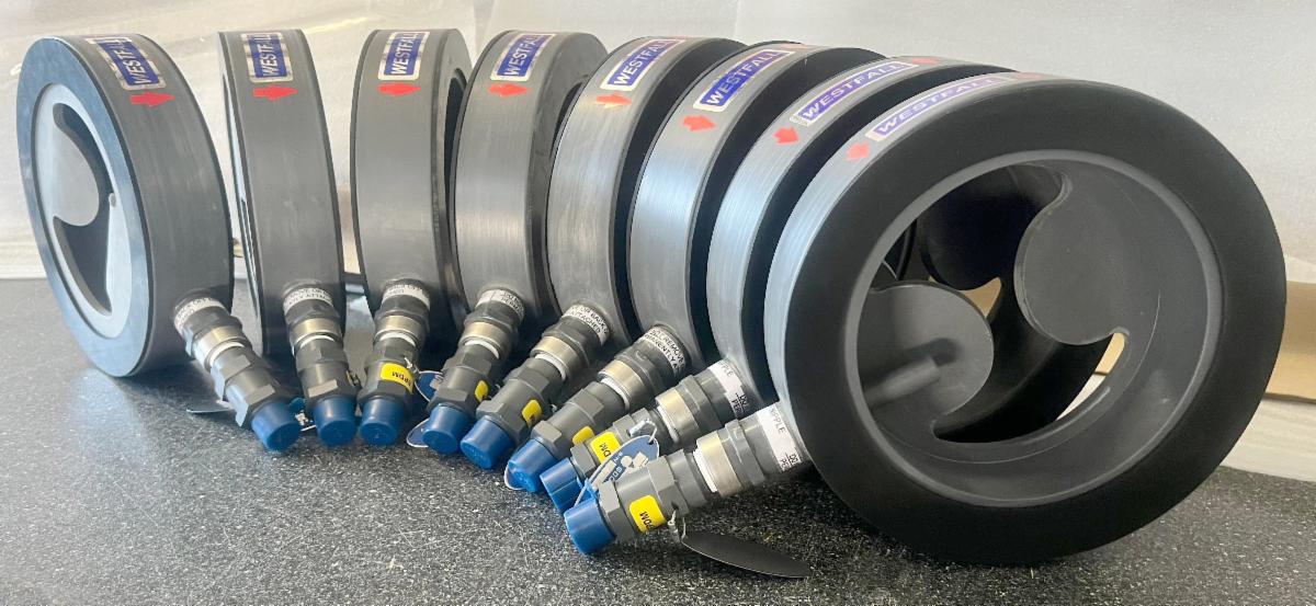 Westfall Model 2800 Wafer Style Static Mixers made from PVC with single injection quills are now installed in a Texas water treatment facility.